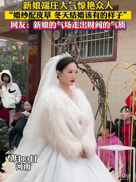 新娘婚纱配皮草入场高级感十足,气质颜值惊艳