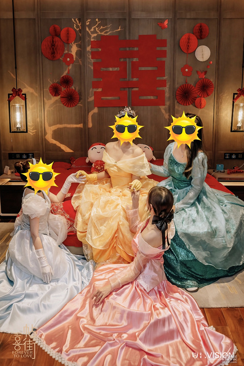 最美晨袍不接受反驳!女孩子要夸一起夸,大家都是公主。开心就好,区分新娘和伴娘只需要一个皇冠即可备婚期间,看多了千篇一律的晨袍,迪士尼公主,我一整个爱住了,尤其是在酒店超级出片!姐妹们,可以冲!衣服是淘宝租的100左右一天, 押金一套200。