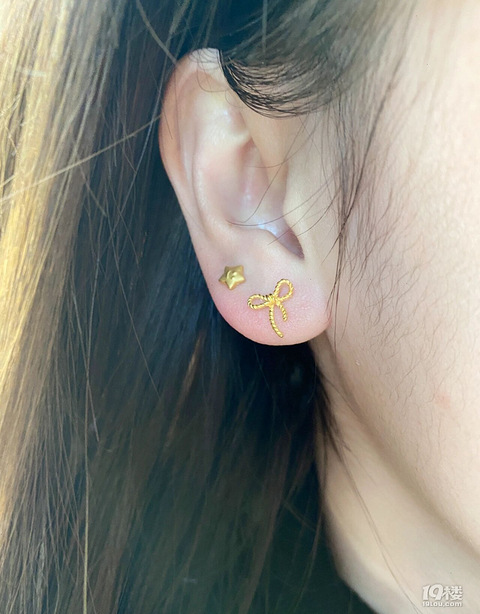 喜欢挂小的耳钉,新到手的两副耳钉都是周大福,都很漂亮很满意,就是那个星星有些挂头发,穿衣服要小心别扯下来,蝴蝶结立体的真的好看~