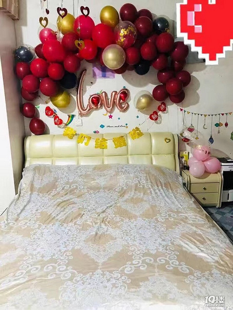 第一次结婚没啥经验,网上也买了很多气球喜字等等。考虑过用氦气,但是氦气有缺点,就是维持时间太短,只有三四个小时左右,前一天晚上弄了,第二天基本都会掉。当天早上又来不及。所以还是决定用传统的气球粘墙上。这里千万要提醒各位,千万不要直接用胶带或者双面胶,胶点直接上墙。因为根本就弄不掉!!!撕下来会连墙漆一起掉,新房非常难看。至于布置用的气球,某宝有很多种套餐,弄起来非常好看。建议多买铝膜气球,充了气可