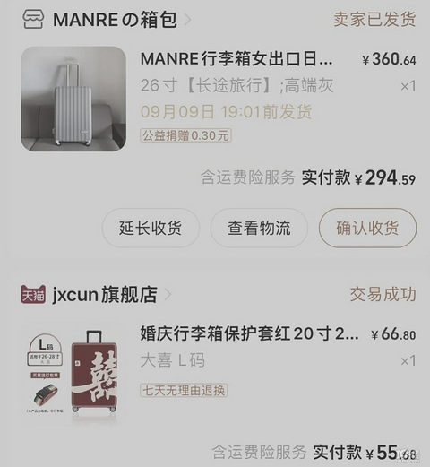 备婚需要的物品很多,例如陪嫁箱就是一个为了让新买的行李箱可以循环利用,也可以配合结婚当天的喜气盈盈,红红火火所以参考了小红薯上很多新娘的小巧思~最后决定用行李箱罩+其他颜色的行李箱=陪嫁箱看上去同样够红火,够喜庆~~