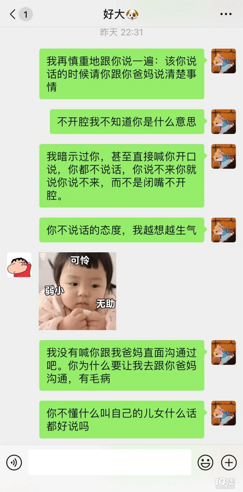 我一直觉得谁的父母谁去沟通,我不会让他来和我父母谈事,因为我知道我才是亲女儿,不管什么事肯定是我开口更好谈,事实也是如此。所以我一直跟他讲,和他父母沟通的时候他才是主力,结果一见面,他跟个哑巴一样,什么不都说。他爸对我说“婚礼化妆你自己不就可以画吗?”他在旁边屁都不放一个,事先说的好好的,他来搞定他爸妈,能不能谈成功另说,可他倒好,连个屁都不放。失望至极!