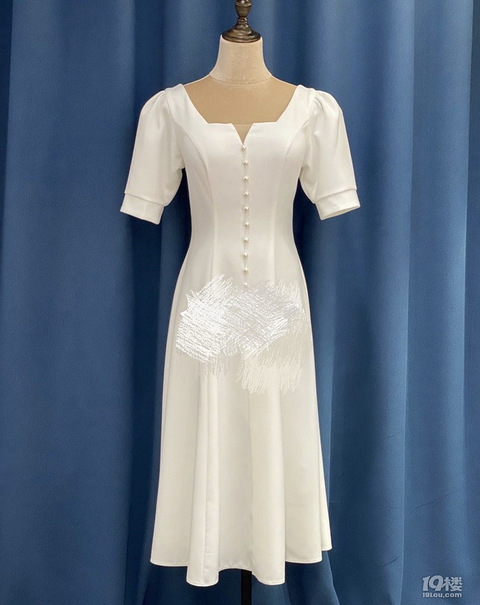 我找了两个伴娘,我在婚纱店把婚纱确定后,就把伴娘服发给伴娘挑选衣服,然后有个伴娘就说不要一字肩、不要吊带、不要纱纱裙,要有袖子的,不要纱纱袖。然后她选择了下面这条白色的小礼服。