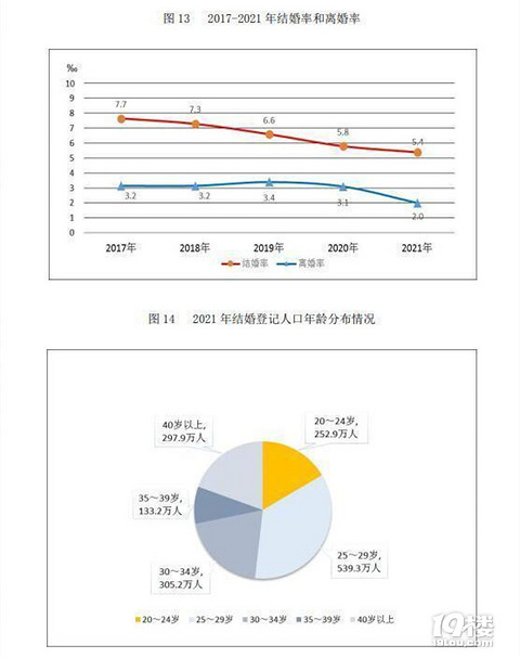 民政部近日公布的《2021年民政事业发展统计公报》显示,2021年,全国共有婚姻登记机构和场所共计4372个,其中婚姻登记机构1069个,全年依法办理结婚登记764.3万对,比上年下降6.1%。结婚率为5.4‰,比上年下降0.4个千分点。依法办理离婚手续283.9万对,比上年下降34.6%。从2021年结婚登记人口年龄分布情况来看,25-29岁年龄段最多,为539.3万人;30-34岁年龄段其次,
