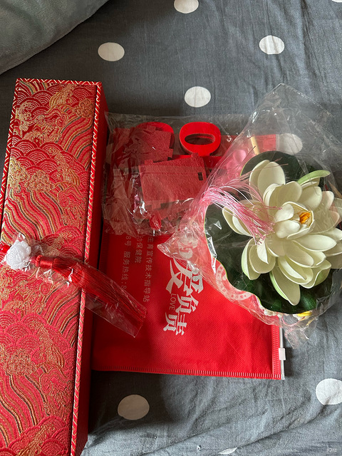七夕正好遇上周末休息,领证都不用请假,果断选择10号去领证,没想到民政局还送了好些东西,空着手去的,拿了一堆东西回来。