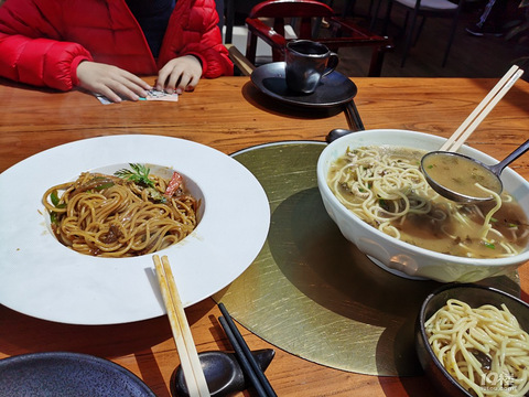 中饭小孩子非要去吃面,意面+汤面这份面是上一次在家里自己切面煮的早上汤圆来一份晚饭就吃牛排+粗粮+水果