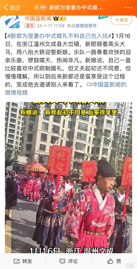 新郎为宠妻办中式婚礼不料自己也入坑
