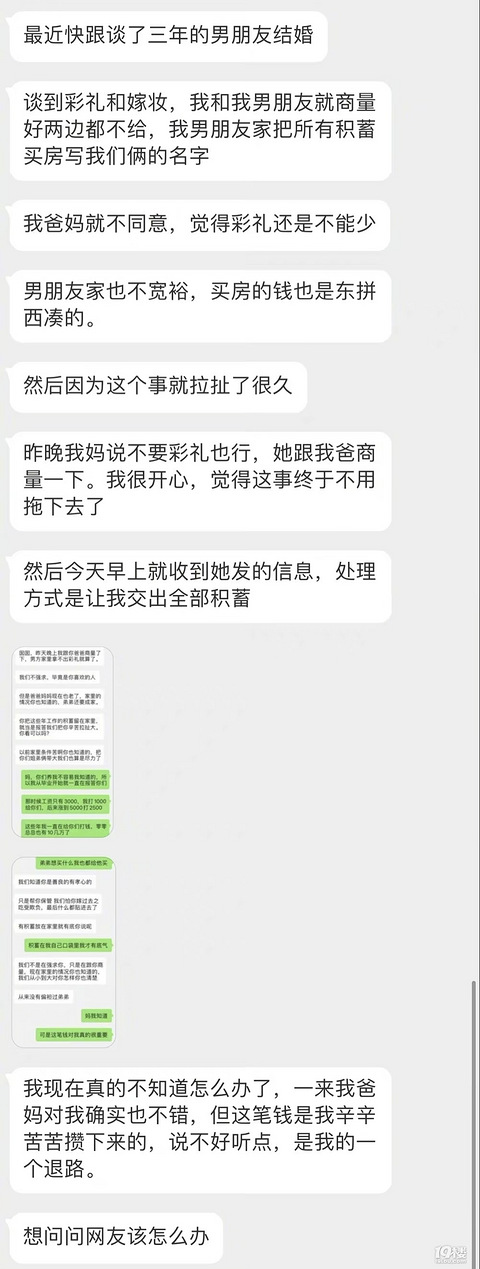 爸妈说可以不要彩礼 但要求我交出全部积蓄 工作后也频繁找我要钱