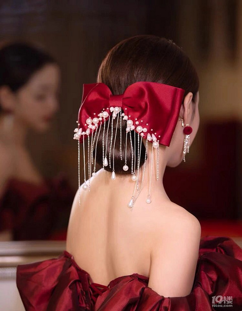红色礼服搭配的流苏蝴蝶结真的也太美了吧