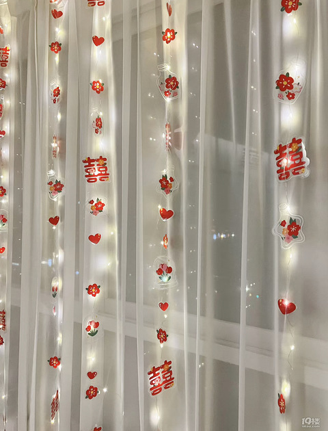 这个喜字立体窗帘挂件也太美了!特别的是还有亮灯!
