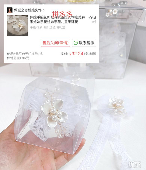 我买的的伴娘手腕花真的是好仙好温柔!我自己带着也觉得好喜欢!新娘也可以带可以搭配小裙子,白色蓝色香槟色的都可以,我的伴娘团也说很好看还可以放在伴手礼里面,有送小盒子和喜字贴拼夕夕上面买的加上补贴也才8一个真是是精美又平价!姐妹们快点买起来