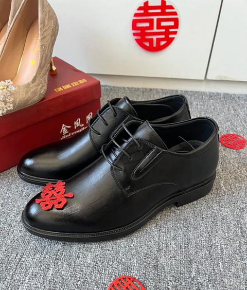 婚礼倒计时!给老公买的结婚皮鞋到了……有一个6厘米的无感增高,很隐形在外面完全看不出来我老公净身高174 cm,穿上秒变180 +哈哈哈哈我老公说穿着很舒服和平底鞋没啥区别不急脚也不磨脚,软皮软底的,结婚穿一天都没累关键是才100+就算结婚只穿一次也不心疼
