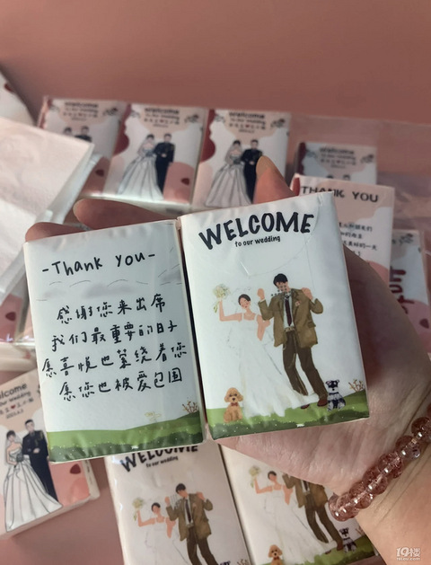 手帕纸便携很实用,避免了感谢卡宾客不好带走的尴尬 用定制纸巾代替感谢卡仪式感细节感满满 关于质量外包装是哑光膜颜色很高级很正印刷非常清晰不是平时塑料感内里纸巾质量纸巾是加厚四层8张一包压花纸质各种都很漂亮 没有别的味道很柔软亲肤 关于定制过程我先根据宾客人数和礼品安排选好需要的包数人数少的可以一人一条十小包人数多可以一人送一包然后根据商家模版和自己婚礼色系确定了稿子也可以提供自己图片和名字日期选择
