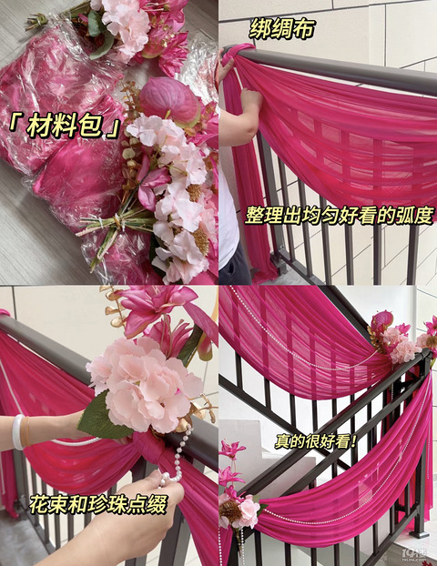 给婚房楼梯布置好,来宾们远远的就知道在哪层,爬楼仿佛都没那么累了而且布置好看了,来往过路的邻居都会说这家人结婚走心又有眼光随手拍出来都很有氛围感,巨出片!