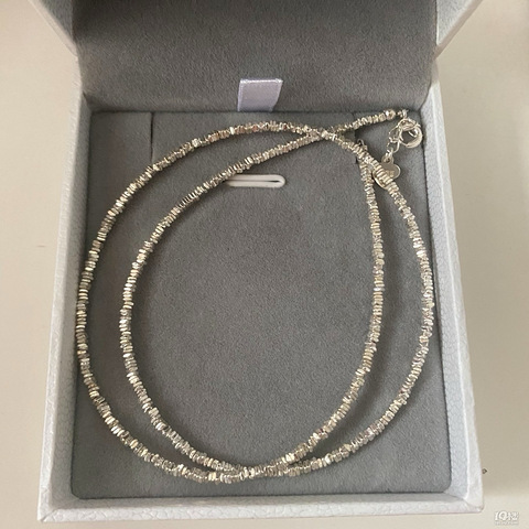 几年前很流行的碎银子项链,过了几年了还是很喜欢。戴起来也会闪闪的百搭