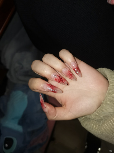 这个美甲漂亮吧!因为皮肤白,所以美甲就要带点红色来衬托,这样看起来又美又有活力,而且快过年了,红色也比较喜庆。