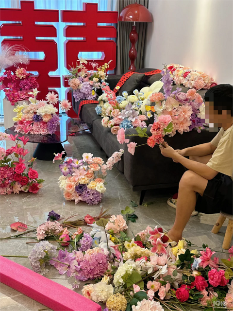 老公真牛!批发的仿真花做了好多组!!多巴胺色系好好看~
