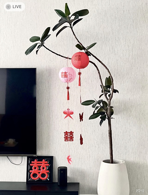 两个小灯笼让这颗小树一下子有了结婚喜庆的氛围感~