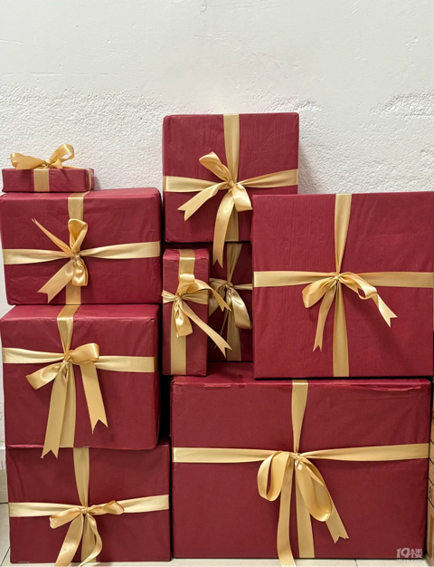 因为婚礼主仪式是在农村,加上婚期时间很多亲朋好友不一定到得了现场,所以在答谢宴安排了比较有仪式感的环节!希望让到场的宾客都参与进来,而不只是来简单吃个饭,同时也想把幸福和感谢传递给每一个人,抽奖礼物是我精心挑选考虑到宾客日常都能用到的包装纸用的是红色雪梨纸丝带:2.5cm金香槟