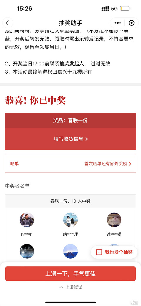 抽奖抽到到发光春联啦