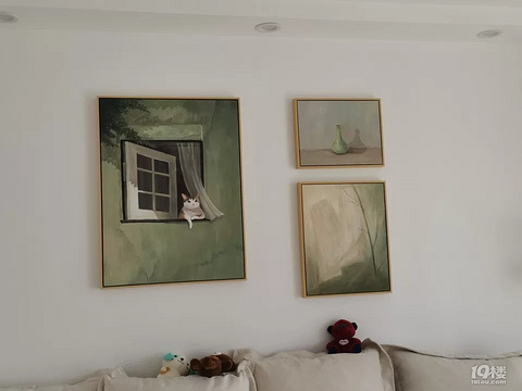 城市:嘉兴、小区名称:紫园,户型面积:90平,风格:北欧风、硬装修费用:10万左右,软装秀:6万左右 换了客厅的装饰画,绿色的背景里有只喵星人,春天感铺满而来,嫩绿的叶子随风飘曳的姿态就很有生机。啊,是春天呀!买一束绿色的洋桔梗,把春天带回家,感觉客厅又多了点小生机。洋桔梗颜色都是淡淡的绿色的,非常清新。