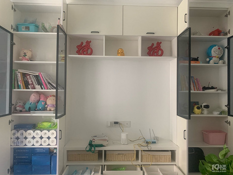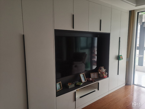 装修之前就看了很多装修方案,抖音、小红书各种。我家里零零碎碎的东西太多了,就想做一整面电视机柜,可以看电视,也可以放东西。效果出来后,我们一家人也蛮开心,感觉蛮好的