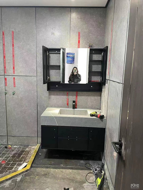 【城市】:嘉兴【小区名称】:新中国际【面积】:130平左右【装修费用】:30万左右【装修风格】:现代简约吧【装修时间】: 2021年这个月秀的第三样东西,家家必备的洗漱镜子。每天都要打扮美美的,所以选择了轻奢风的岩板一体智能浴室柜,花了1500米。整体可以分为三个部分,从下到上,第一部分抽柜,足够的储物空间来放清洁洗漱日用品。第二部分,岩板台盆,选择阿玛尼灰。第三部分就是镜柜,没错藏在镜子后面储蓄
