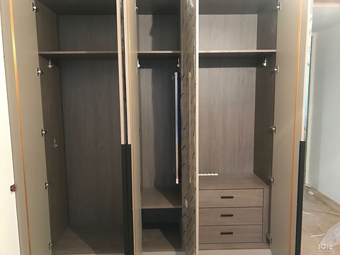 【小区名称】:紫金艺境【户型】:三室两厅两卫【面积】:120平方米【装修方式】:舅舅倾力打造【装修预算】:25w(是滴,包括看到的所有)【装修风格】:大概算现代简约【装修时间】: 2019年6月一月一度的秀家大赛又来啦。先看衣柜,定制的衣柜门,选了深色紫荆花,雪糕棒的连接图案特别独特。衣柜是自己木工打造选用E0级板材绿色环保,衣柜里面的图片不方便,我就简单说一下,衣柜上面的顶柜是放棉被四件套的,衣