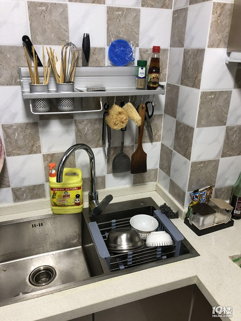 小区名字:海纳公馆户 型:三室两厅两卫面 积:122平米装修方式:自己设计,老爸的施工队搞定装修预算:30万装修风格:现代简约这个月来秀秀厨房啦!看了好多厨房设计,都是统一颜色,没有做饭的兴趣,而我采用的黑白格瓷砖,贴砖时而水平,时而旋转,满是活跃的跳动感,给人大方活泼的感觉。进入厨房的左手边是一块空闲之地,后期准备放个架子,不能浪费这弹丸之地。旁边是双水池,水池右方上侧安装置物架,菜刀、