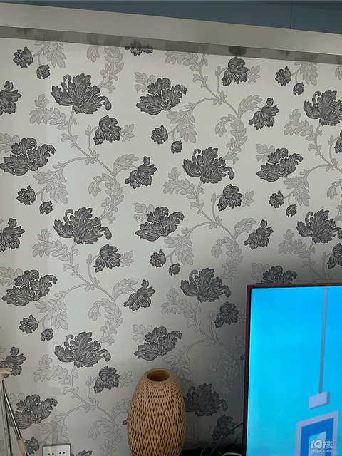 选了蛮久的电视机背景墙,上面的是金包边,还是有点现代风的,立体的花色,这样拍看不出来,有点立体的,黑白色,符合家里的现代风格设计[ej=1F60F][ej=1F60F]