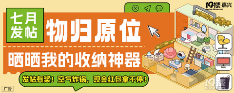 暑假来啦!宝妈宝爸们是否在为孩子们物品乱丢而头疼?新装修的小伙伴是否在担心收纳空间不足?19楼现在发出【物归原位】+晒晒我的收纳神器发帖活动啦!邀约大家分享自己的收纳神器和小妙招~ 【发帖位置】【装修大本营】版块 【发帖标题】【物归原位】+晒晒我的收纳神器/小妙招+标题自拟 【发帖要求】1.晒家里的收纳神器或自己的收纳小妙招(不少于2张)2.文字介绍(字数必须100字以上)3.可以晒收纳前后对比