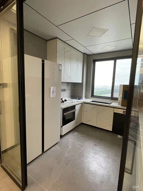 城市】:嘉兴【小区名称】:新中国际【面 积】:140平左右【装修费用】:35万左右【装修风格】:现代简约吧【装修时间】: 2021年 方方正正的厨房你见过吗,我家就是呀。整体一个米白色稍微带点花纹。进门左手边是一个双开门大冰箱,上班忙,一周的食材往保鲜盒里一放,冰箱上层各种饮料,熟食,牛奶,面包,奶酪。下层冷藏柜里冰淇淋和肉类,水饺和馄饨怎么能不备一些呢。再过来,四开门的橱柜,下层安排了嵌