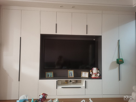 电视背景墙什么也没做,感觉单纯的用白墙也是非常好看的,也非常的实用。背景墙如果装修的过于华丽,这样的装修单独看起来确实很好看,可是在看电视的时候就会觉得非常的杂乱。因为大家在看电视的时候肯定是将注意力放在剧情之中的,这个时候背景如果过于华丽的话,反而会吸引走自己的注意力。家里客厅装了投影,所以还有一大块幕布,平时在家就可以享受影院的感觉,幕布100*100.坐沙发上观看正好,唯一不足就是观看时最好