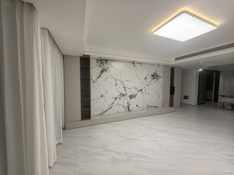 客厅电视背景用的岩板,岩板的价格虽然有点高但是不容易过时,而且看起来非常大气,以前的人装修房子是越复杂越好,所以他们往往喜欢买欧式家具,虽然说欧式家具看起来很高端,大气上档次,但是不好做卫生,而且还容易过时,所以现在的人基本上都比较喜欢简约的装修风格,所以岩板的背景墙就很适合,我觉得这也是一个非常不错的选择。房间没贴墙纸,也没刻意想到要装修电视背景,以白墙为主,白墙看多了也不会觉得腻,简简单单,清