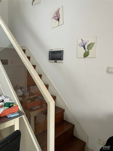 楼梯当时考虑了很久,是网上订制还是自己去厂家定制,后来还是选择厂家定制。一来材料比较放心,二来可以做万自己喜欢的样式,底部用角铁搭好架子,上面的是实木楼梯板,扶手也是实木的,没有先用传统的楼梯柱,用了一块钢化玻璃,考虑到边上就是餐桌,用玻璃可以减少走楼梯时灰尘的掉落。