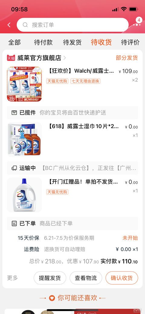 618真的是剁手的活动了,今年还好忍住了一些,买了一些必备品。 洗脸巾真的绝绝子,我是挺喜欢的哈哈哈!之前618买的用了两年,终于用完了,正好这次618再囤一囤! 特别要说这个消毒液,抢到了前五百名付款,本来110是两瓶3l的,前五百还送一瓶3l的,非常划算!夸夸自己的手速,哈哈哈哈!