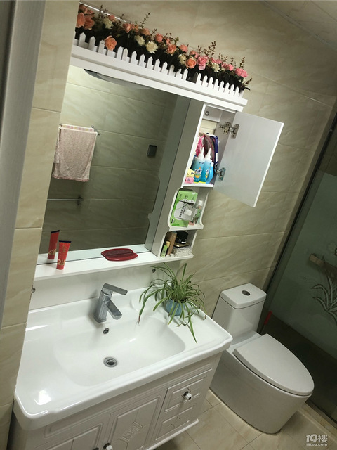【小区名称】:江南太阳城【户型】:三室两厅两卫【面积】:120平方米【装修方式】:老丈人倾力打造【装修预算】:20W(是滴,包括看到的所有)【装修风格】:大概算现代简约来晒晒镜子哈。家里唯一的镜子就是浴室的洗漱镜了。买的是一体柜,洗脸盆下方是两门大空间和两个抽屉,实木储物主柜,防腐防潮,大瓶的洗衣液及小块的肥皂牙膏通通不在话下。陶瓷盆面,盆边圆角设计,圆润光滑,耐磨易清洁。上部空间是由镜子和小柜子