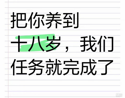 你觉得把孩子养到几岁,算完成任务了?我觉得18岁,那时候已经上大学了,应该有自己的选择,自己的生活,自己的思想