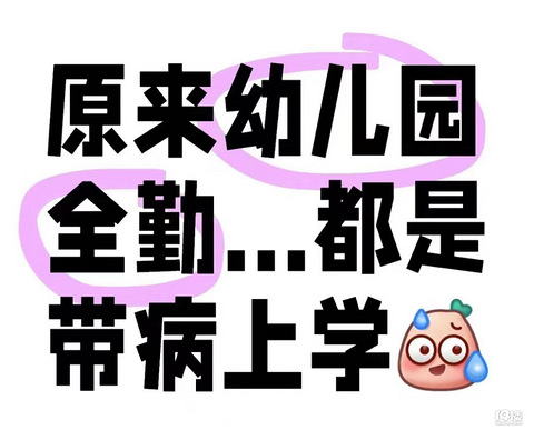 开学后已经请了好几次假了一直不理解其他孩子是怎么每个月都能得到全勤奖状的结果今天接孩子的时候才听到其他家长说他们家孩子都是带病去幼儿园的,整的还挺骄傲!!怪不得自从上了幼儿园孩子就开始经常生病了,总算是让我找到源头了!!!真的服了!!