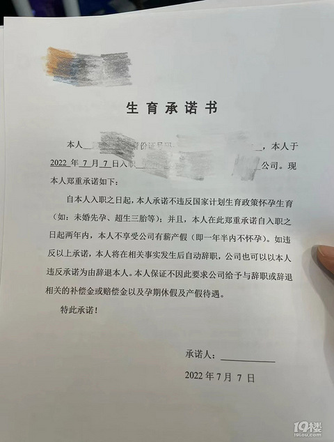 上班第五天被要求签生育承诺书,真是让人大开眼界了…