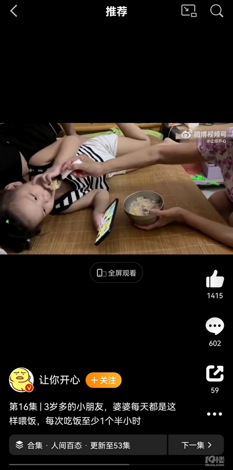 在网上看到的视频这个三岁小朋友躺在床上,玩着手机婆婆给他喂饭,一个半小时! 我的天啦,这是怎么忍下去了!联想到我家的娃 两岁不好好吃饭 想要玩具我就控制不住自己的暴脾气 想揍人了!