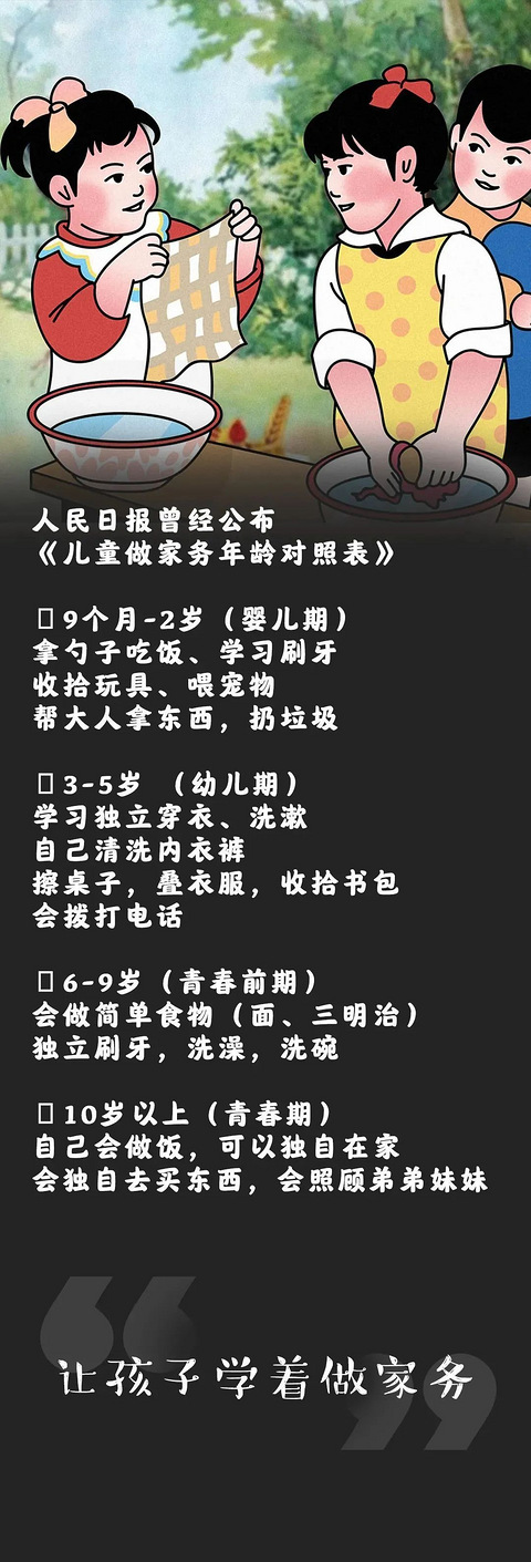 家长圈有个现象叫暑期退步。很多家长说,孩子一过暑假,好不容易养成的好习惯全废了。心理学家杜威说:教育即生长,生长本就是无痕的,教育也本无痕。 生活本身就是教育,暑假也是,没有说教,无需言语,更没有成人的个人意志,这10幅漫画,让孩子在过程中不自觉地受到了教育,这就是无痕教育,也是自然教育,帮助孩子有计划地度过暑假的学习生活。教育不是为生活做准备,教育就是生活本身!1.让孩子学着做家务