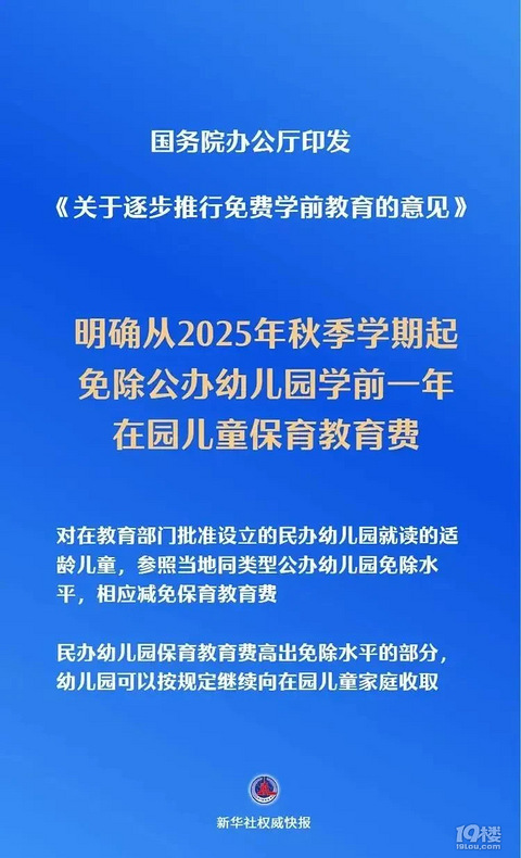 从25年秋季学期起,免除公办幼儿园学前一年在园儿童保育教育费