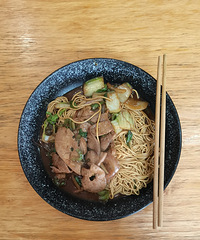 排长,连长,营长,统统不如委员长。 人面,场面,情面,全部不如干挑面。 干挑猪肝面。细面、味浓、香鲜,关键是炒猪肝的火候拿捏精准,大有许